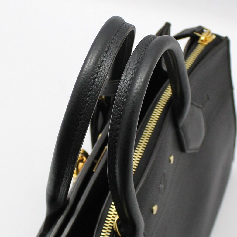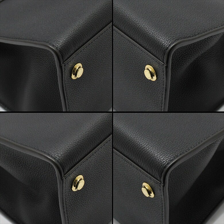 - 시크한 블랙 그레인 카프 스킨 소재에 금장 장식이 더해진 아이템입니다.