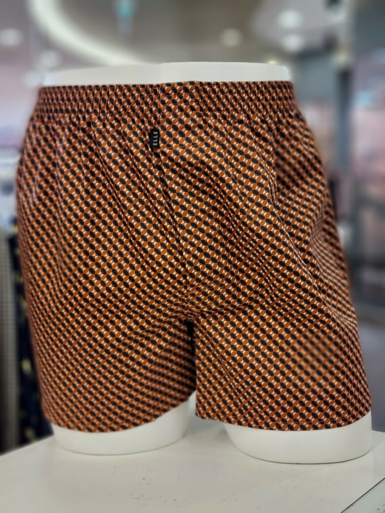 오렌지 컬러의 스퀘어 기하학 남성 트렁크입니다.