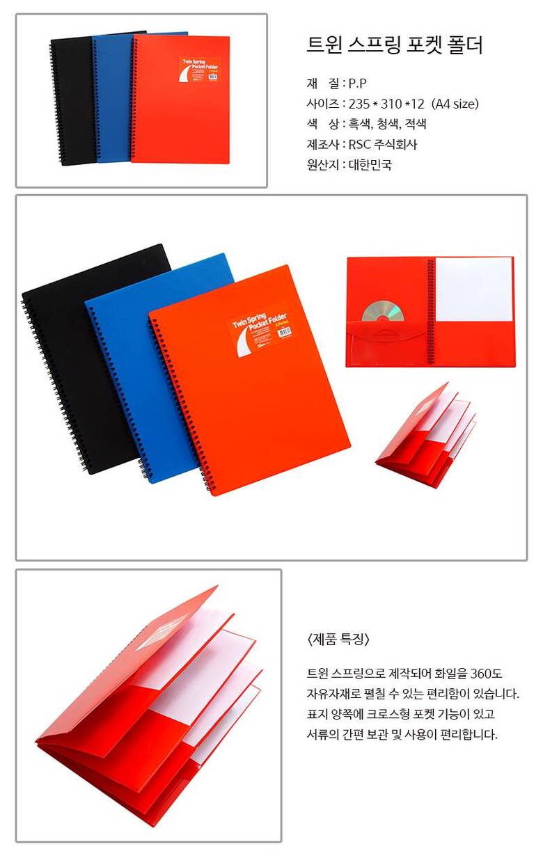 [알에스씨] 트윈스프링폴더 RSF-8 A4 (PP재질3컬러)