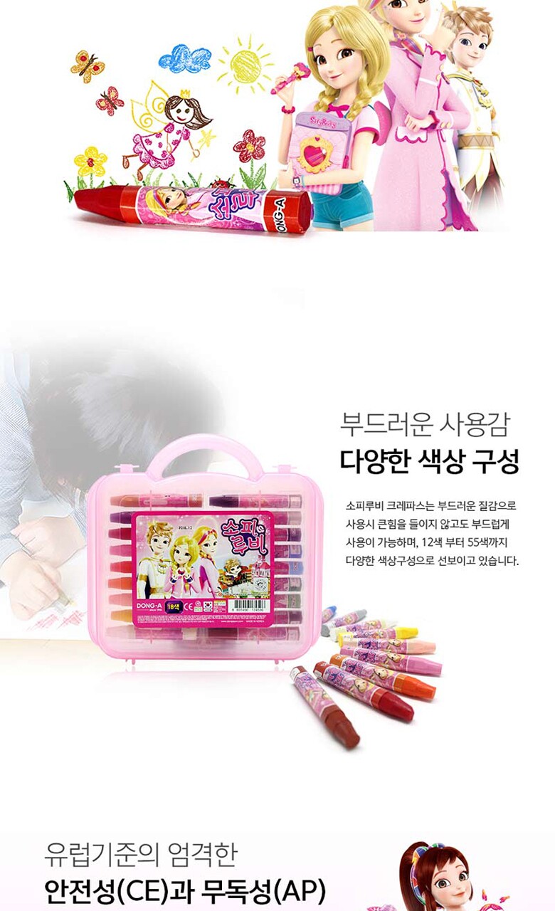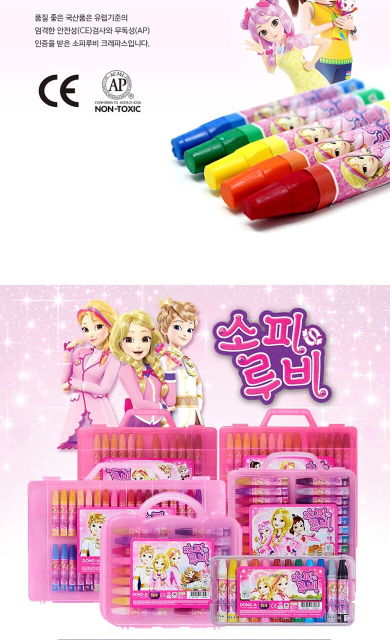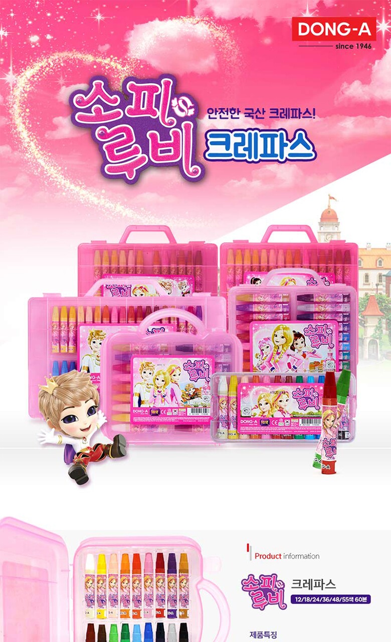 [동아] 크레파스 소피루비 55색60본 여아용 사출케이스 (캐릭터 임의 변경 가능)