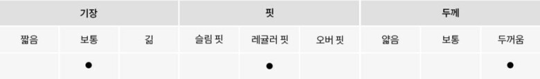 · 핏감 : □ 루즈 ■ 표준 □ 슬림