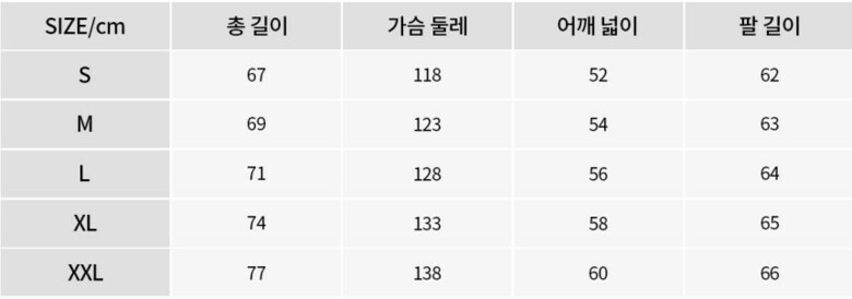 자세한 사이즈는 상세페이지 하단의 사이즈표를 참조해주세요