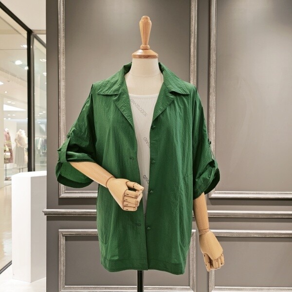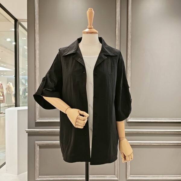 뒷 주름? 카라넥 하프 점퍼입니다~?롤업소매 디자인의 루즈핏 디자인입니다