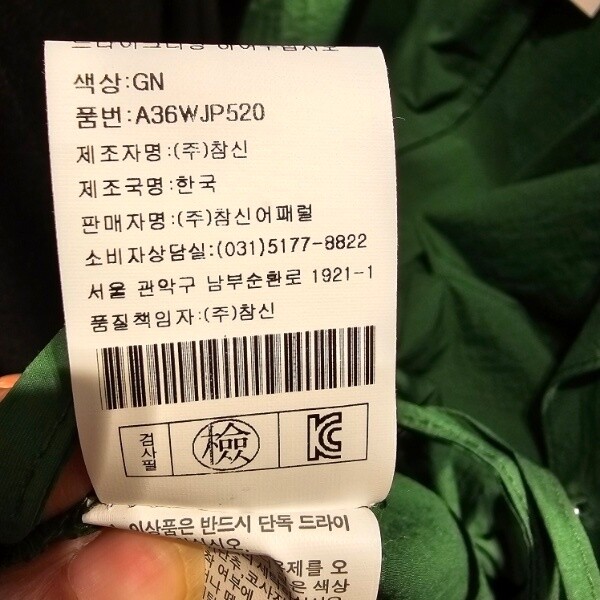 세탁방법 및 취급시 주의사항 : 드라이크리닝