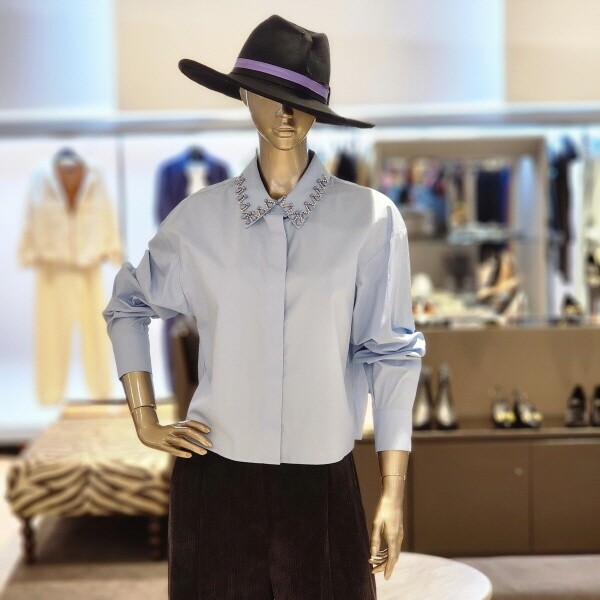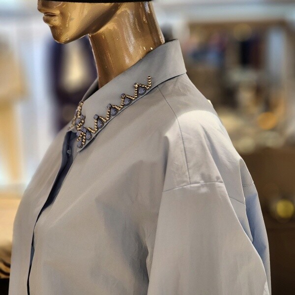 [? 비즈카라넥 루즈핏블라우스?]??/ COLOR /블루,화이트