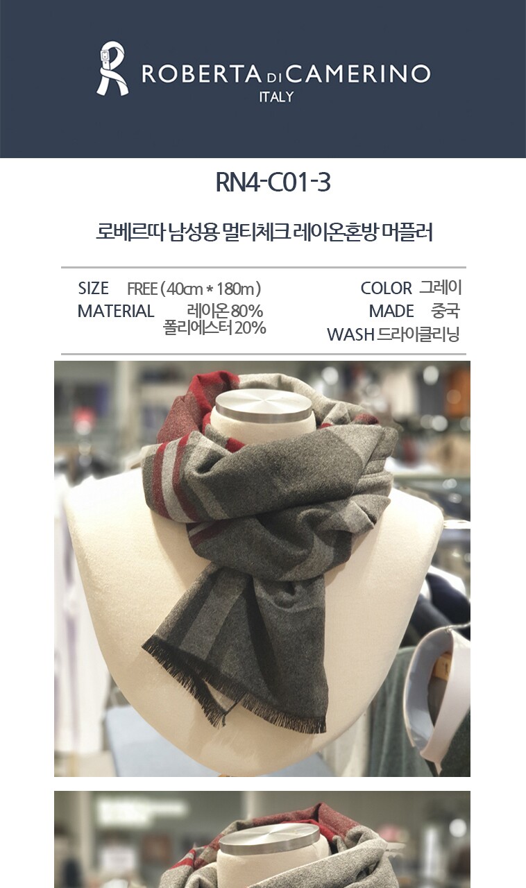 로베르따 남성용 멀티체크 레이온혼방 머플러 RN4-C01-3
