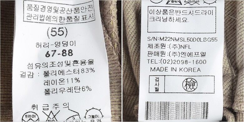 | 1. 제품 소재 (섬유의 조성 또는 혼용률을 백분율로 표시, 기능성인 경우 성적서 또는 허가서) | 겉감:폴리에스터83% 레이온11% 폴리우레탄6% |