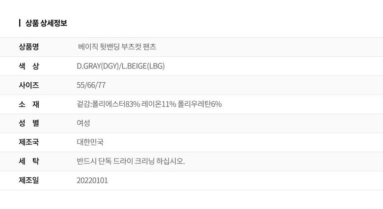 | 6. 세탁방법 및 취급시 주의사항 | 상세페이지 참조 |