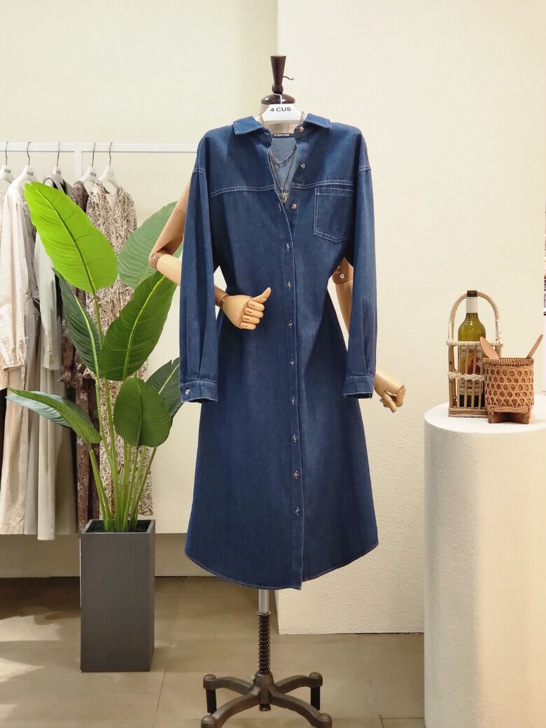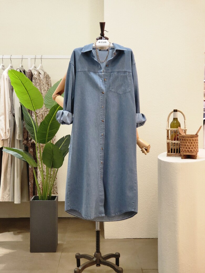 FF2H9OP5062_카라넥 앞포켓 일자 데님 원피스