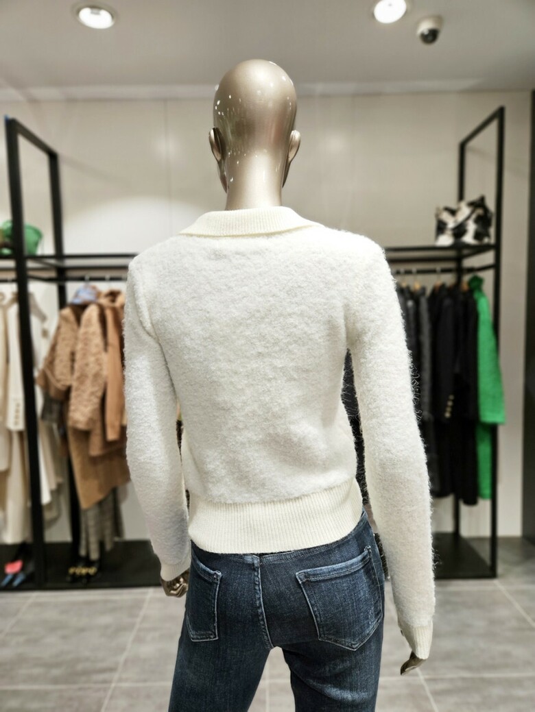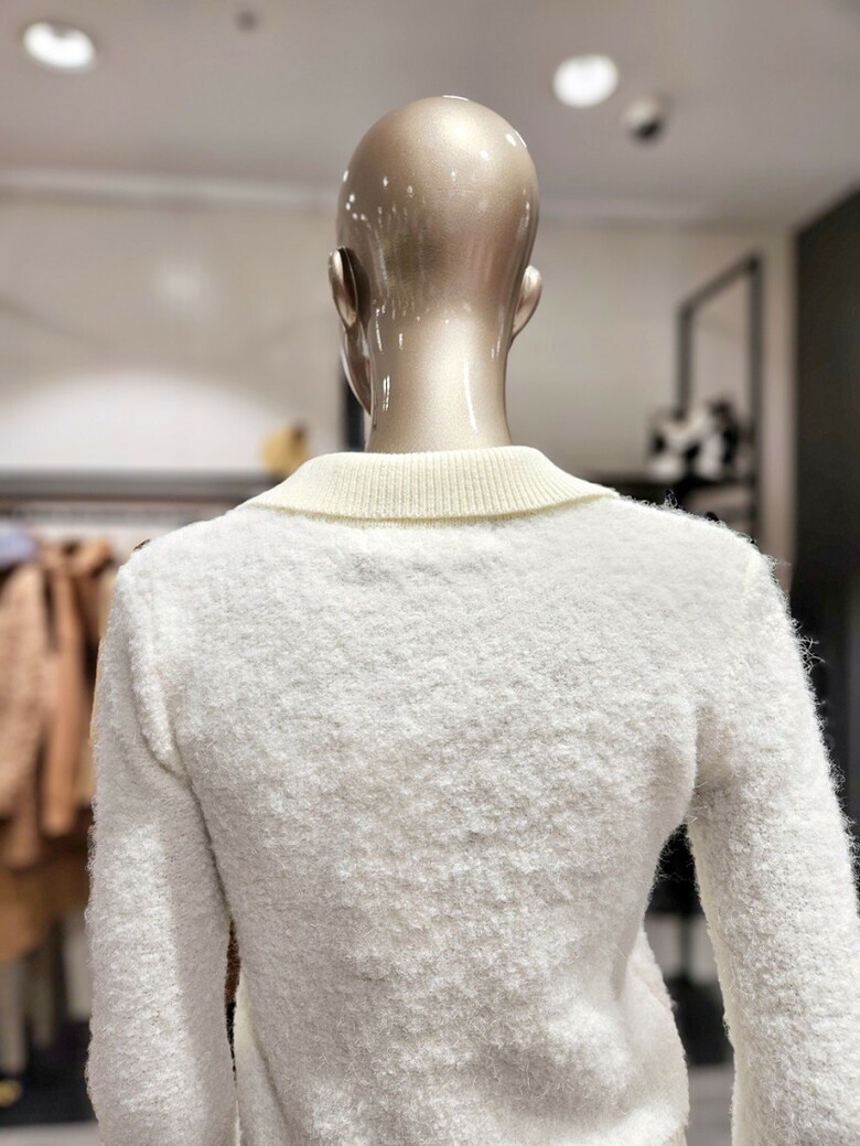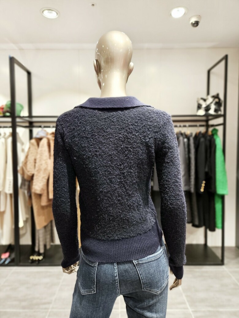 헤어리 있는 울 블랜딩 원사를 사용하여 독특한 부클레 텍스쳐가 느껴지는 아이템입니다