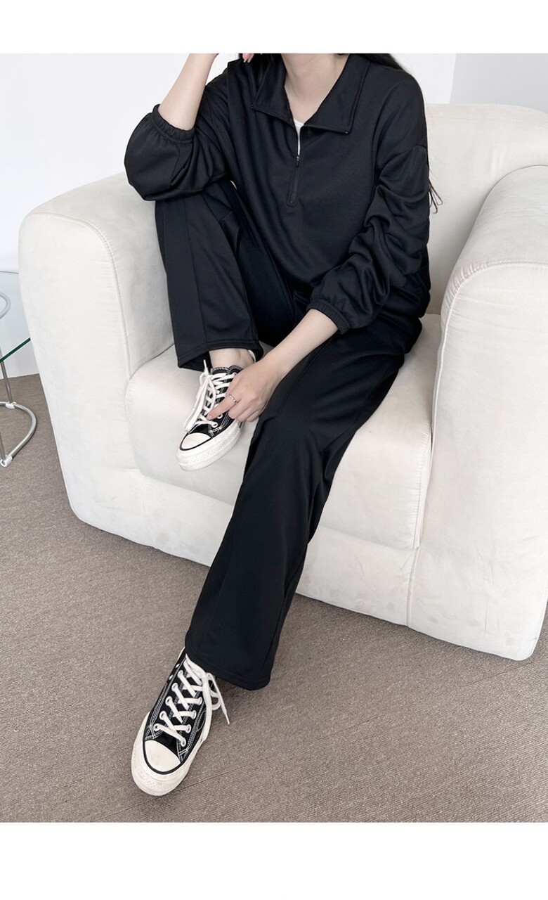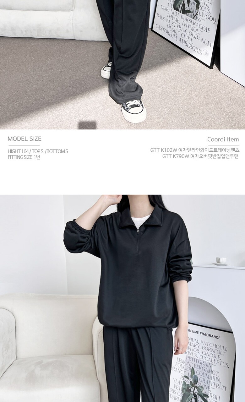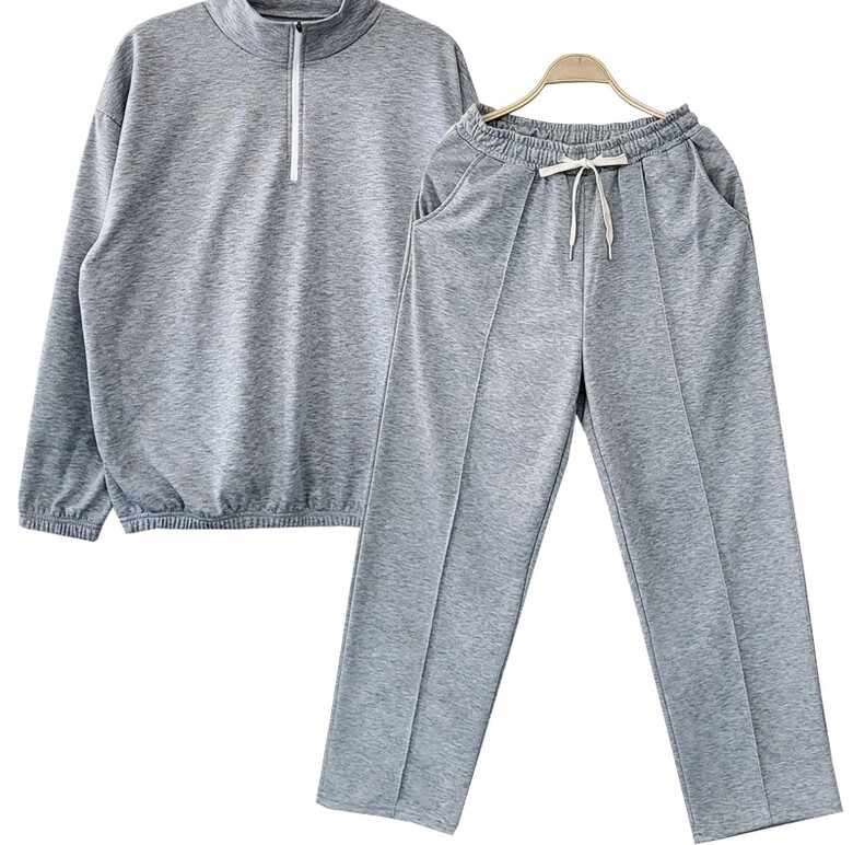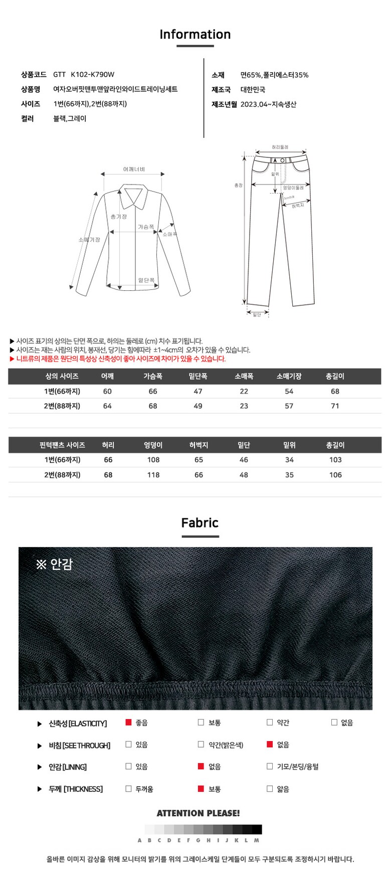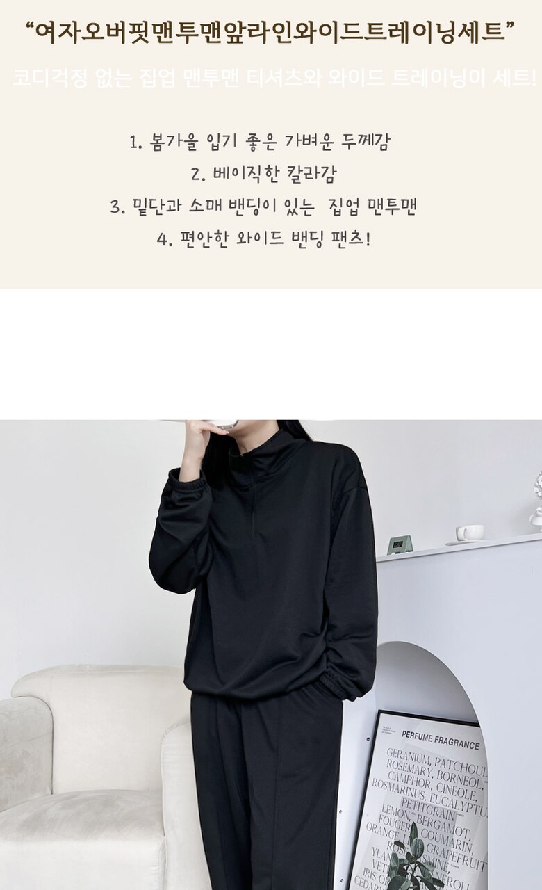 여자 오버핏 맨투맨 앞라인 와이드 트레이닝 세트