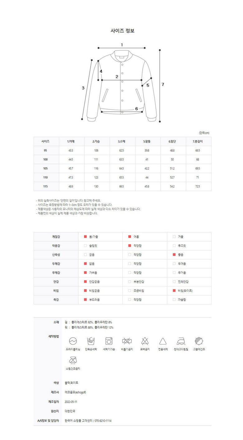| 6. 세탁방법 및 취급시 주의사항 | 상세이미지 참조 |
