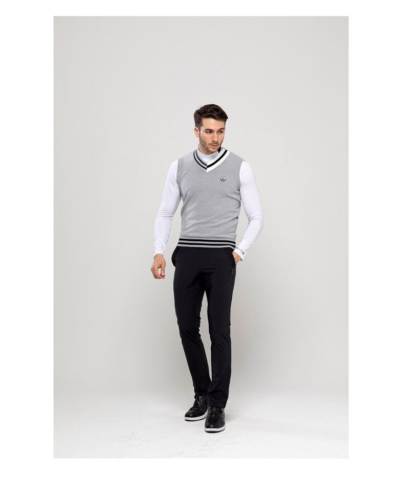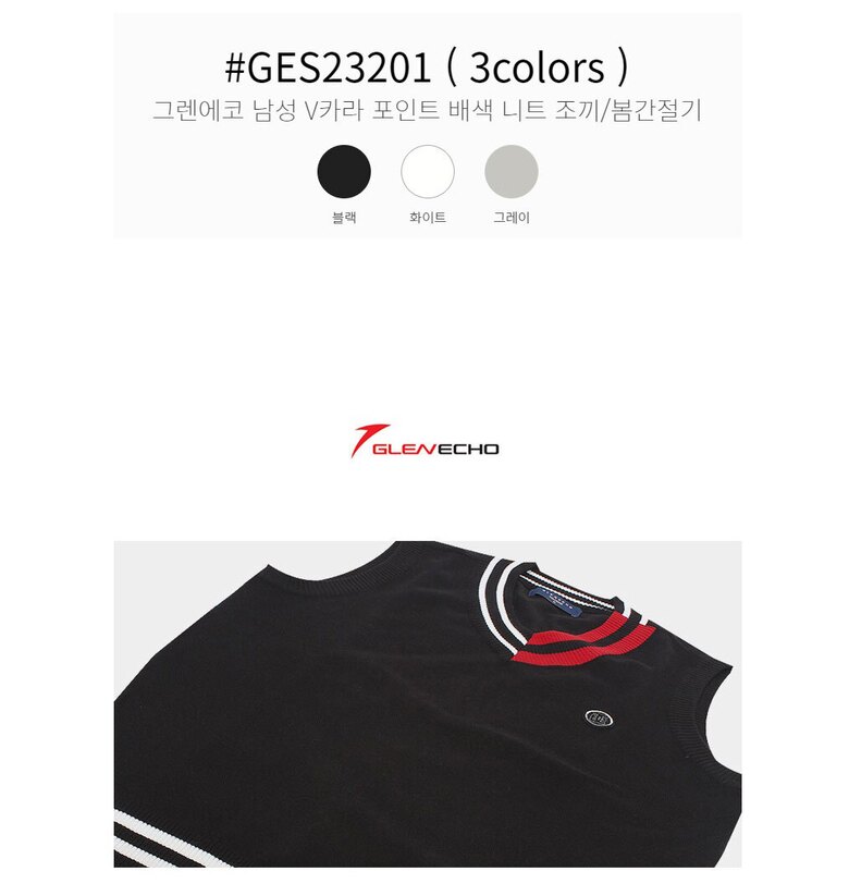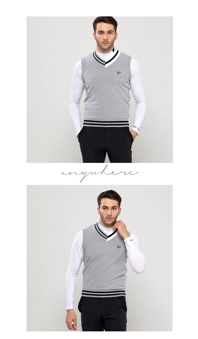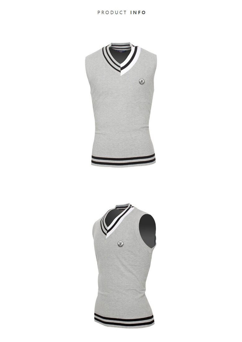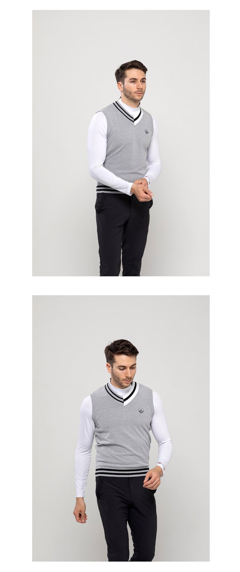 그렌에코 남성 봄 골프웨어 골프 브이넥 배색 니트 조끼 그레이 G28112376