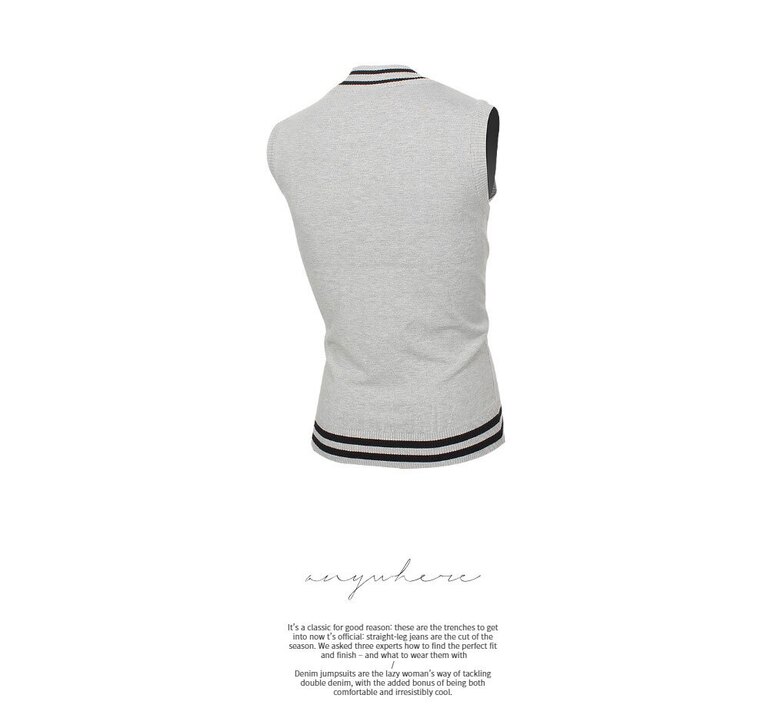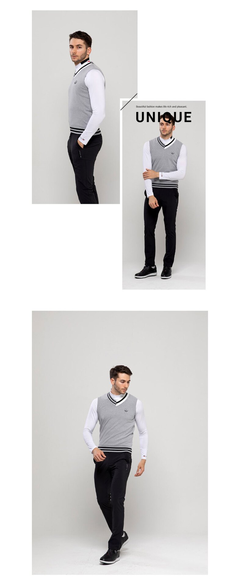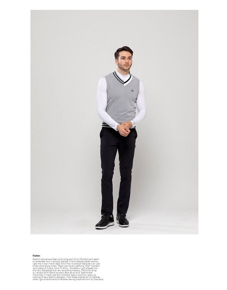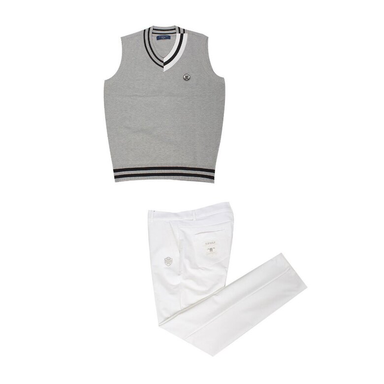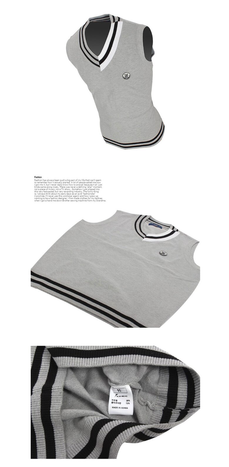 그렌에코 남성 봄 골프웨어 골프 브이넥 배색 니트 조끼 그레이 G28112376