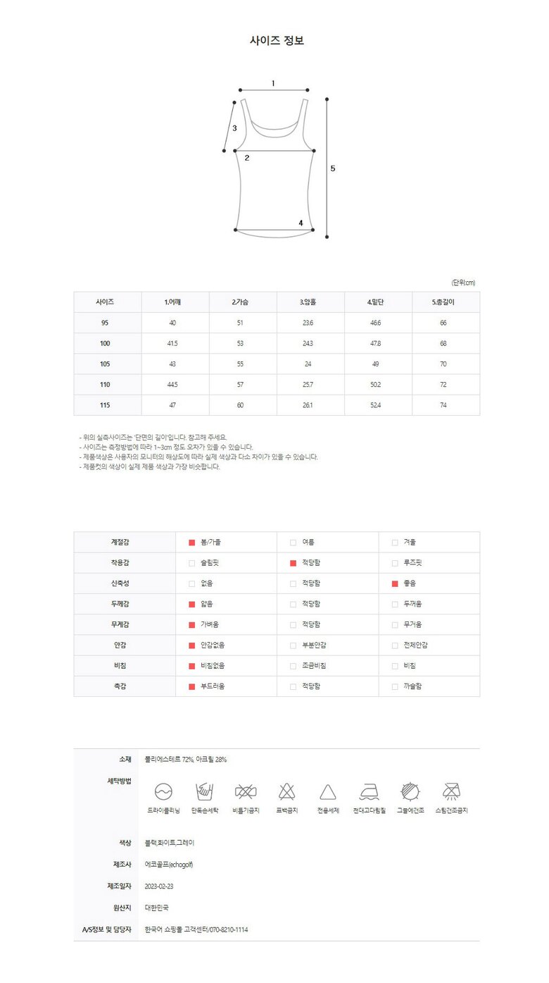 | 1. 제품 소재 (섬유의 조성 또는 혼용률을 백분율로 표시, 기능성인 경우 성적서 또는 허가서) | 상세이미지 참조 |