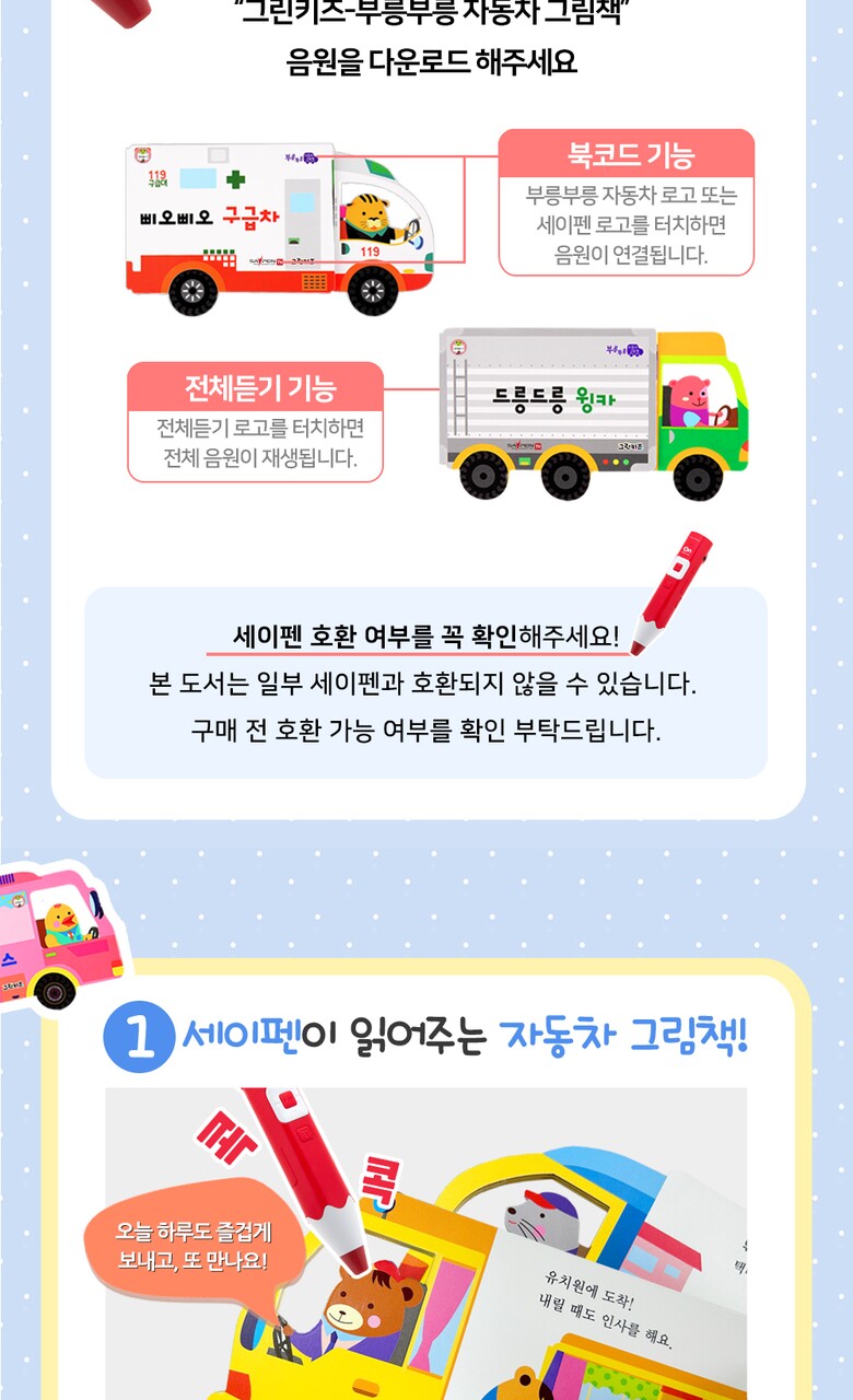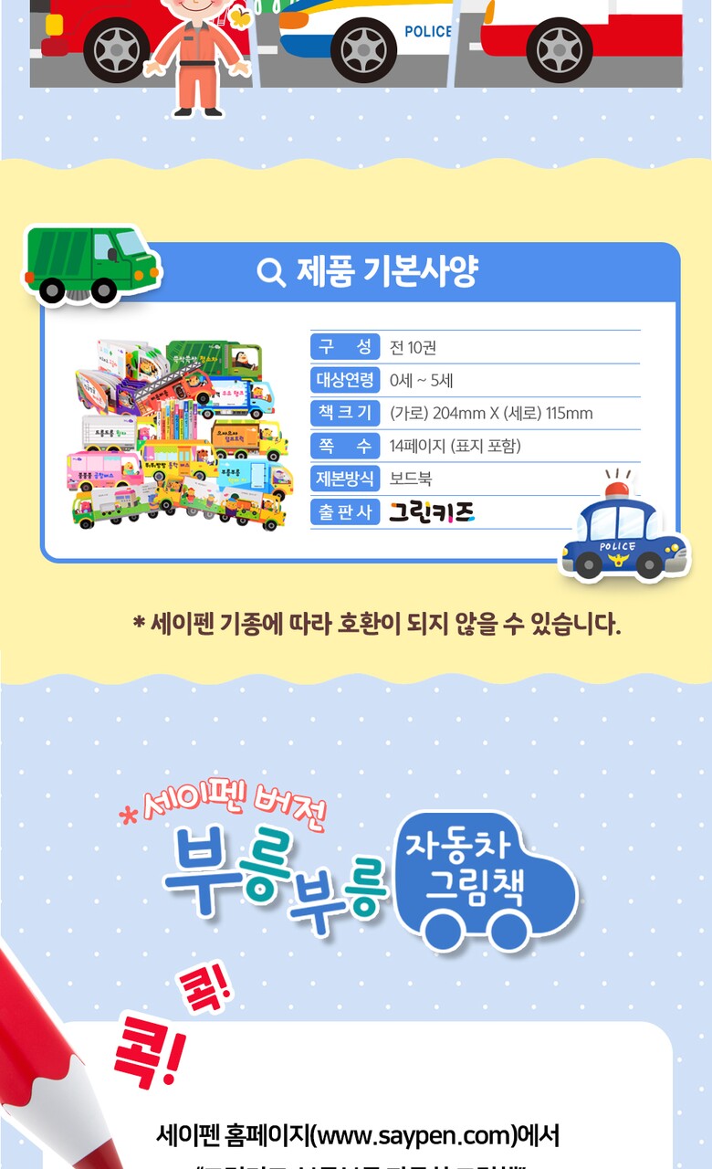 부릉부릉 자동차 그림책 (세이펜 버전/10권) + 레인보우 ON펜(RTR-4000BS)