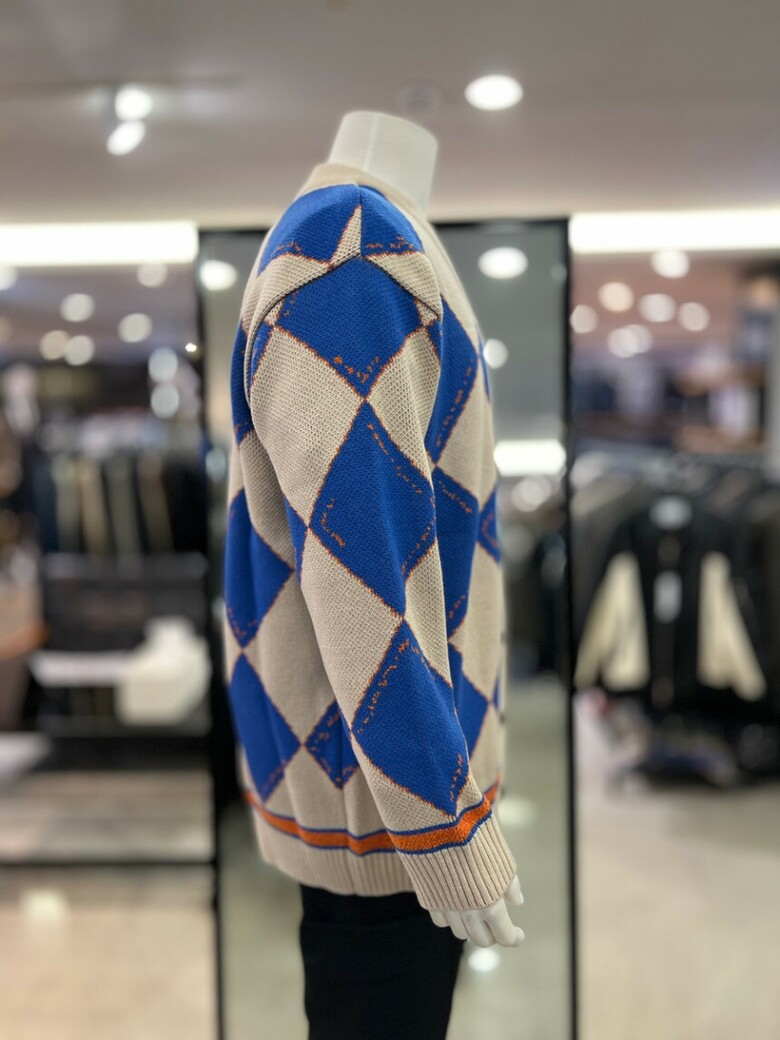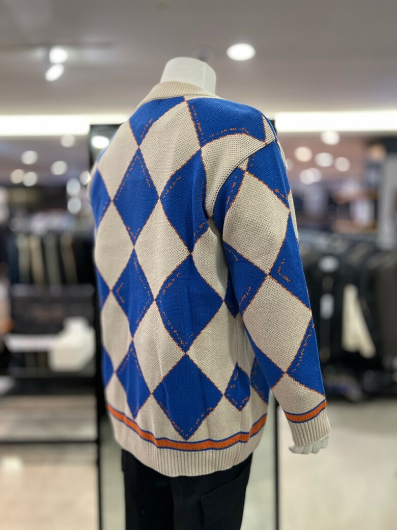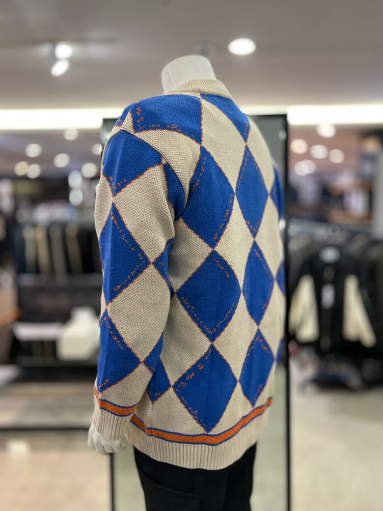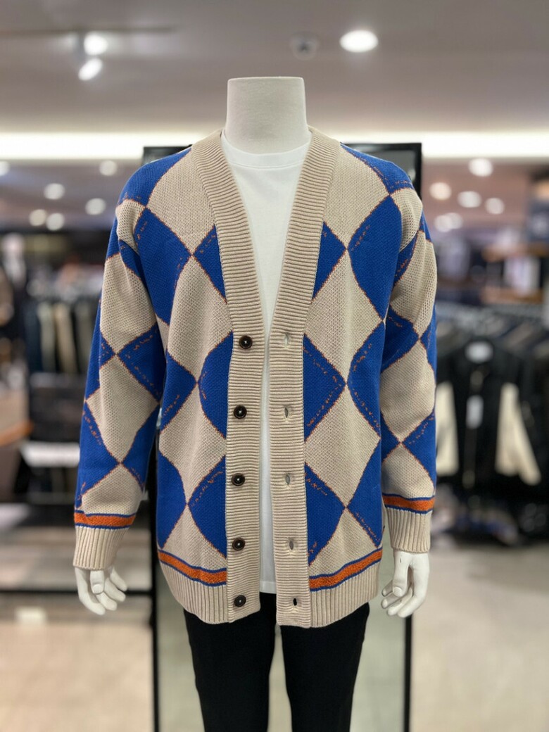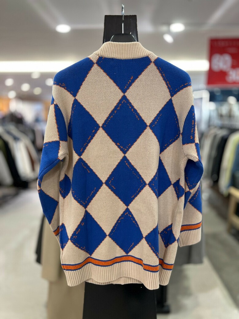 리버클래시 베이지 아가일체크 패턴 V넥 오버핏 가디건 LJW51215