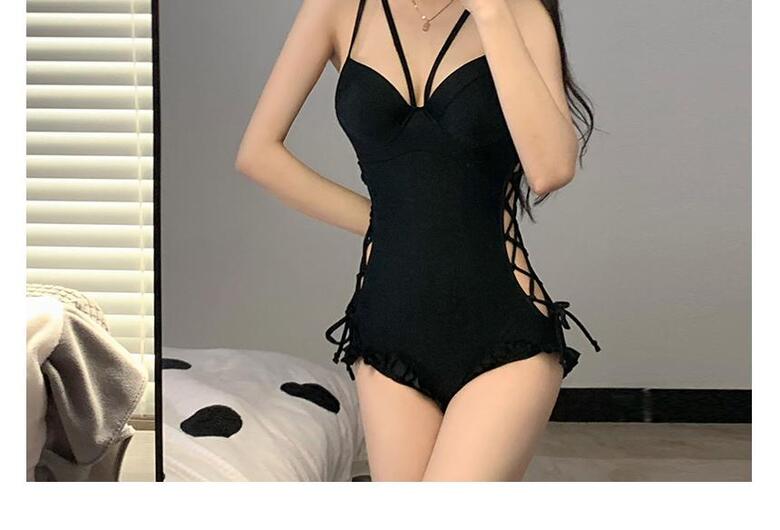 에퀴르 여성 여름 모노키니 시스루 크롭 스트랩 수영복 세트
