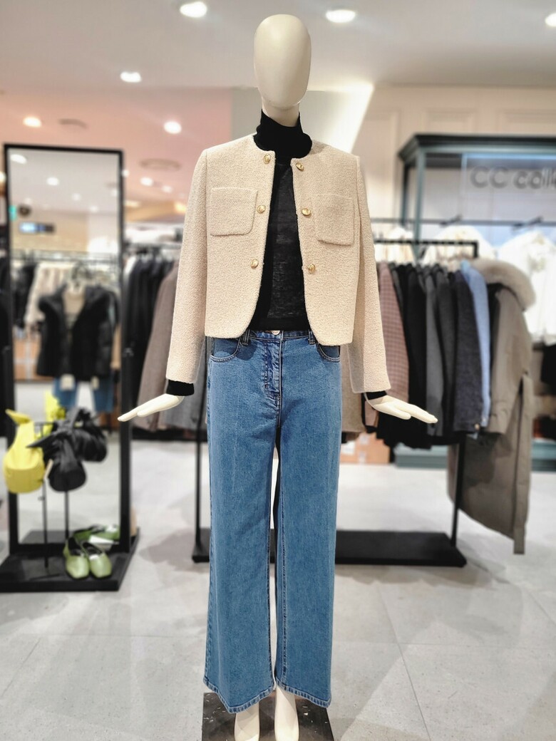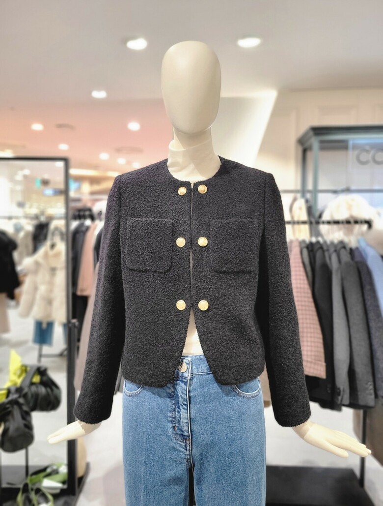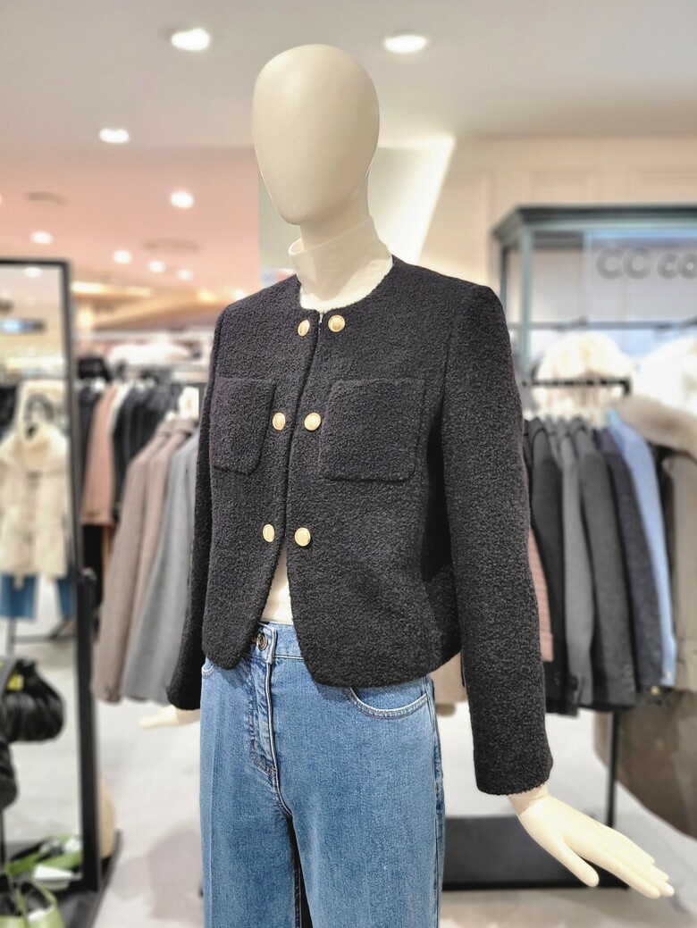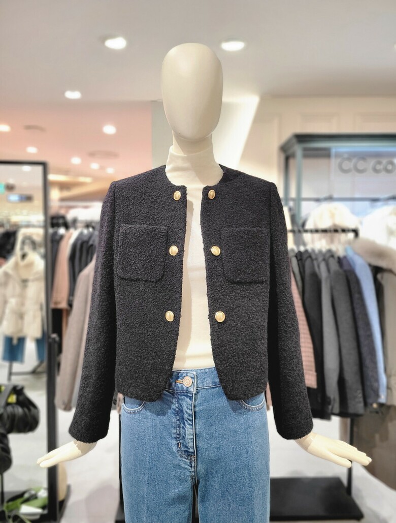 씨씨콜렉트 라운드넥 버튼포인트 크롭 자켓 E241MSF102