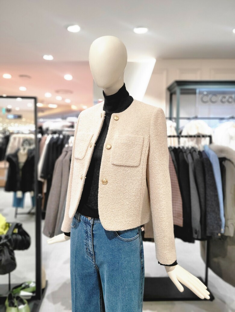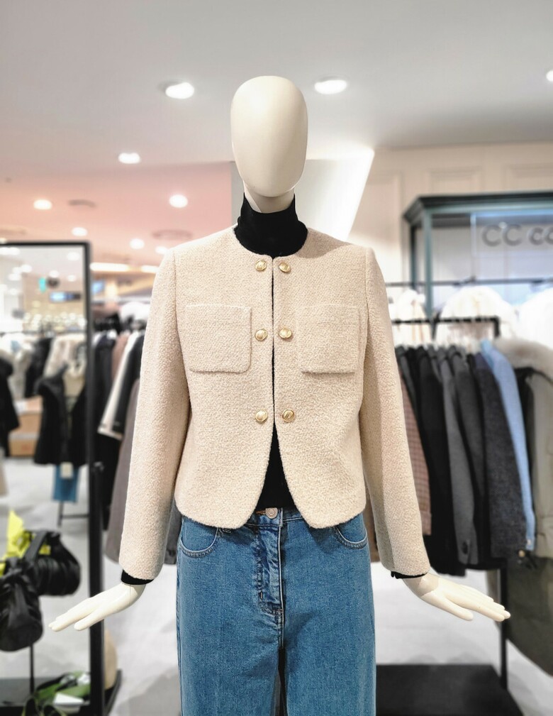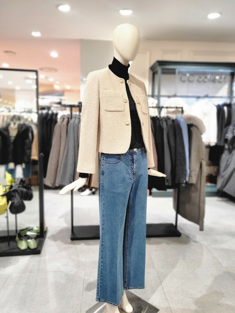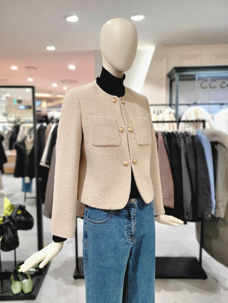 씨씨콜렉트 라운드넥 버튼포인트 크롭 자켓 E241MSF102