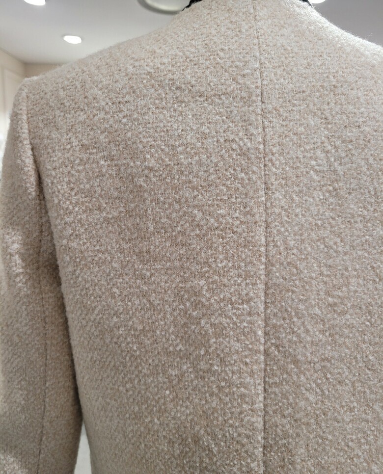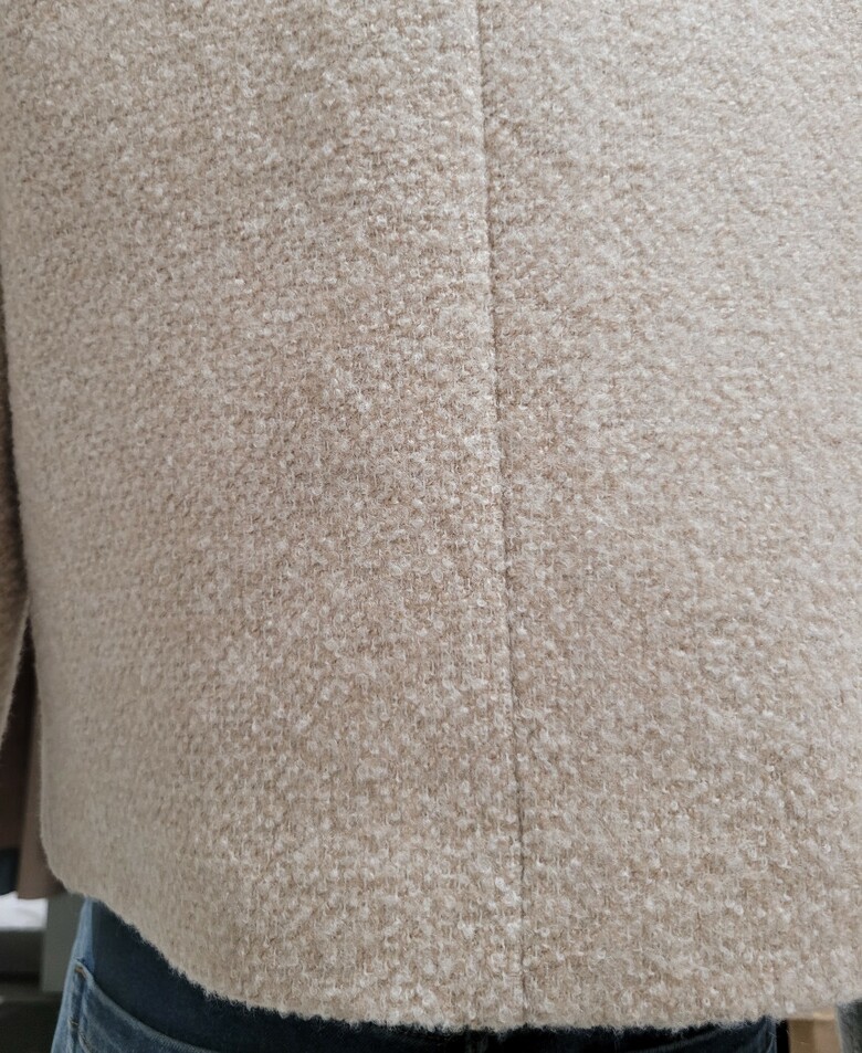 | 1. 제품 소재 (섬유의 조성 또는 혼용률을 백분율로 표시, 기능성인 경우 성적서 또는 허가서) | 겉감:모 75%, 나일론 17%, 폴리에스테르 7%, 아크릴 1% / 안감:폴리 |