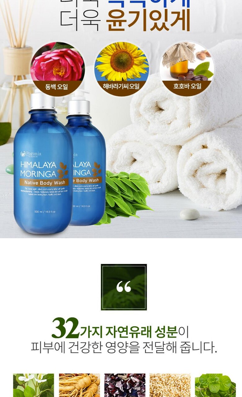 포고니아 헤어&바디 케어 선물세트(모링가 바디워시 500ml 1개+바디미스트 120ml 1개)