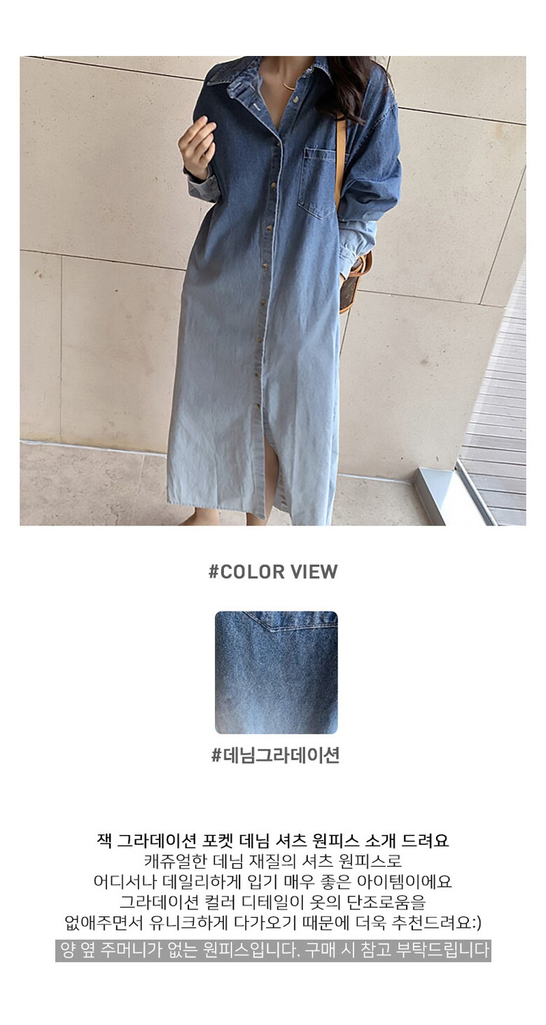 [~77까지]잭 그라데이션 포켓 데님 셔츠 원피스