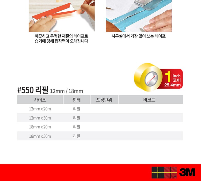 [3M] 다용도테이프리필550 12mmx20M1인치코어(12입)