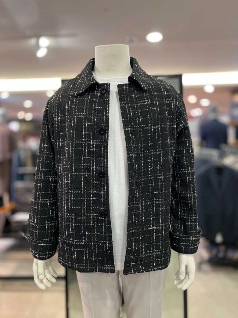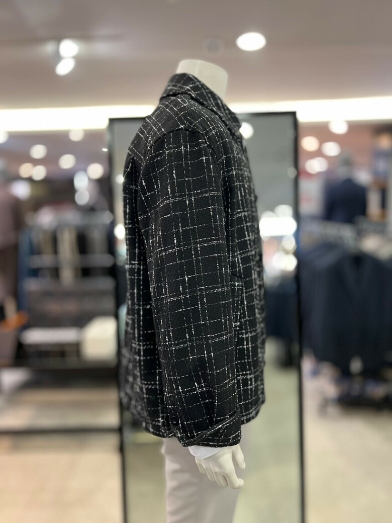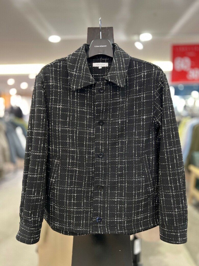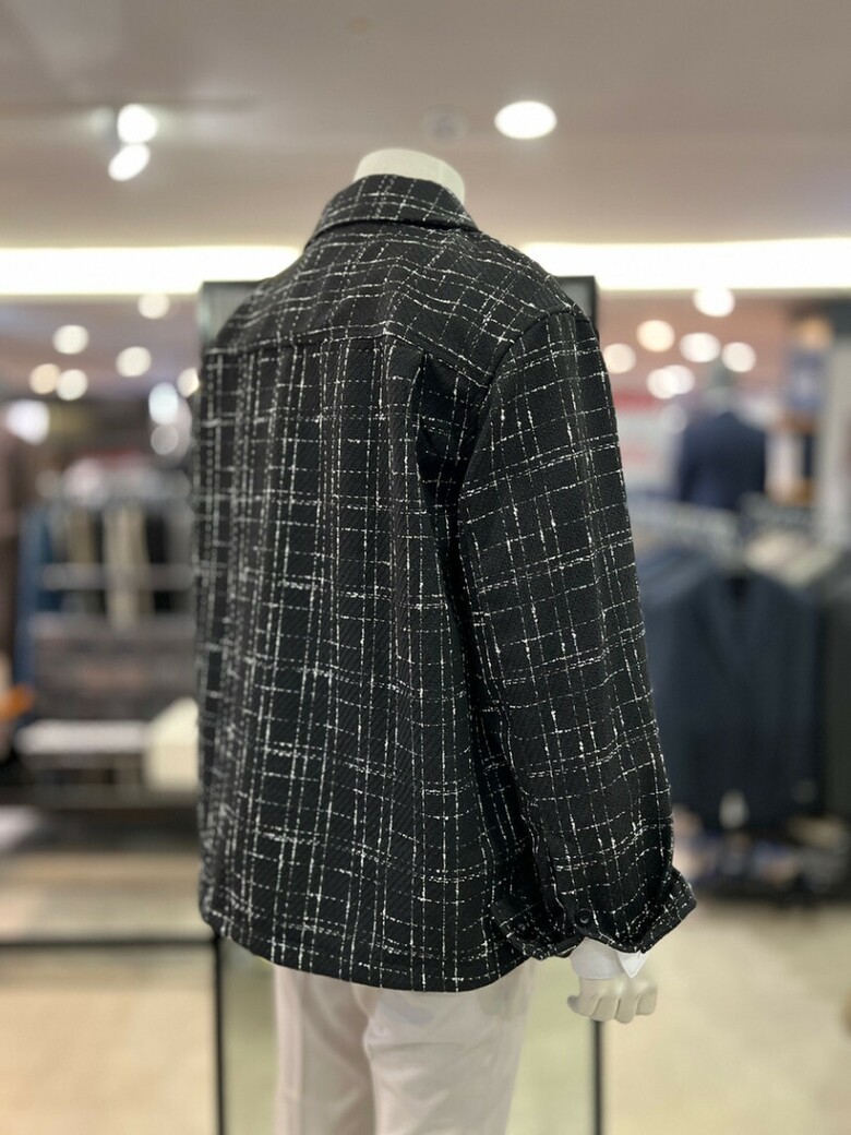 리버클래시 블랙&화이트 트위드 오버핏 아우터형 셔츠 LKS32306