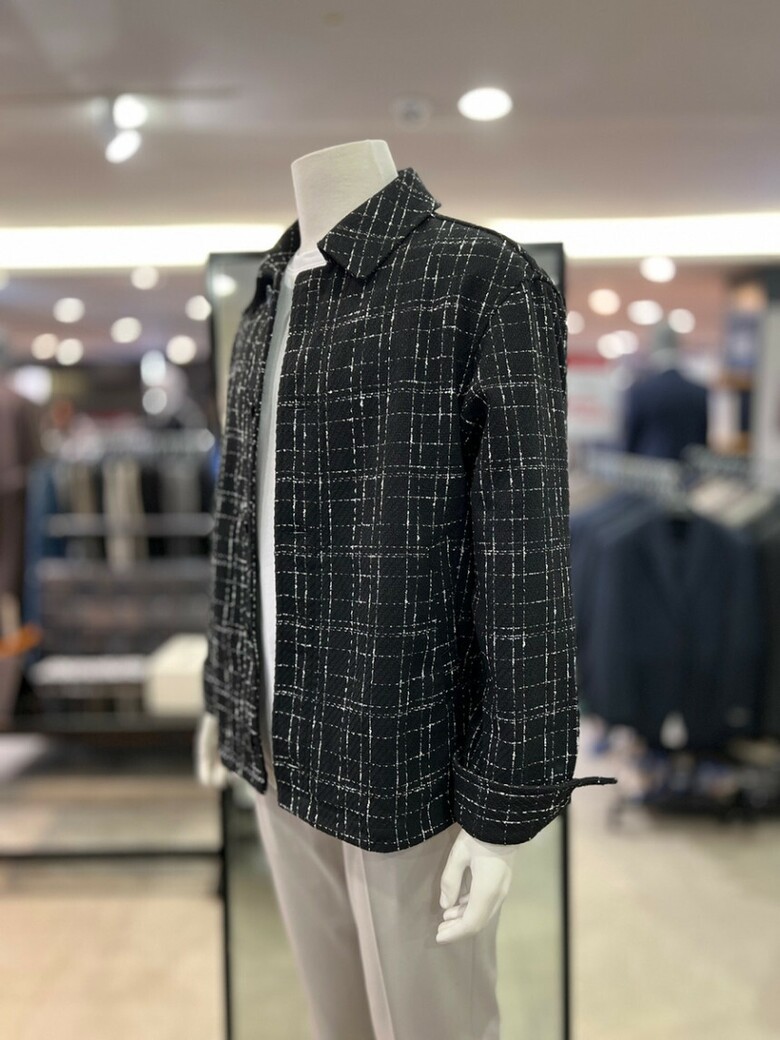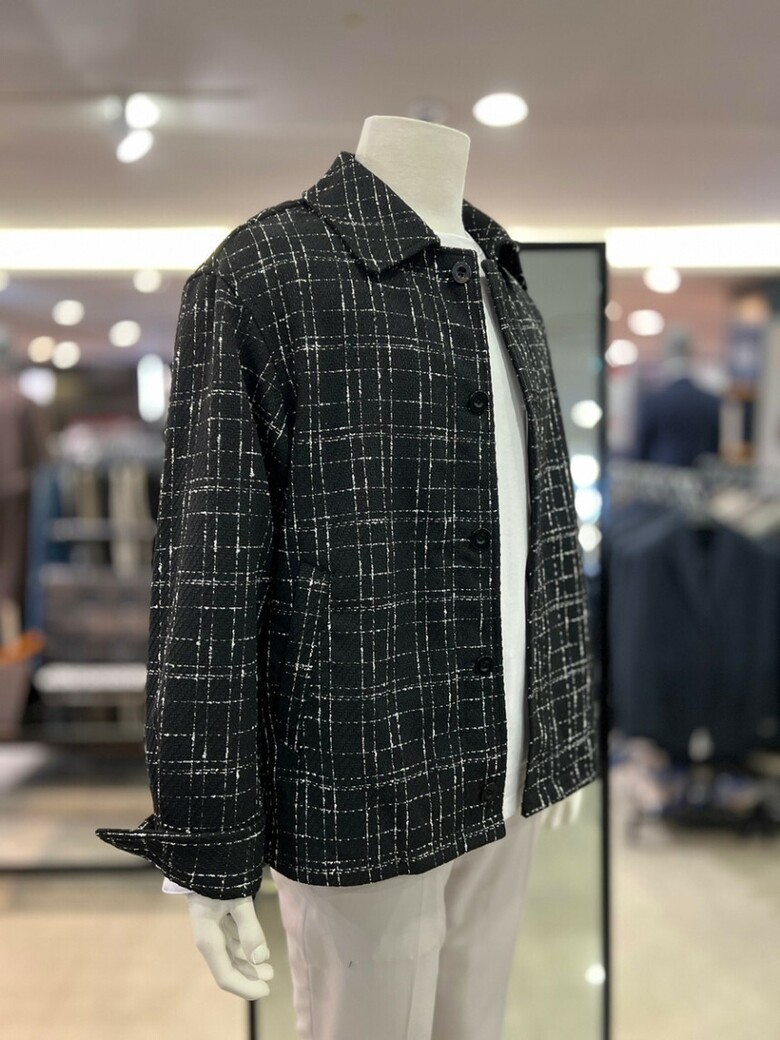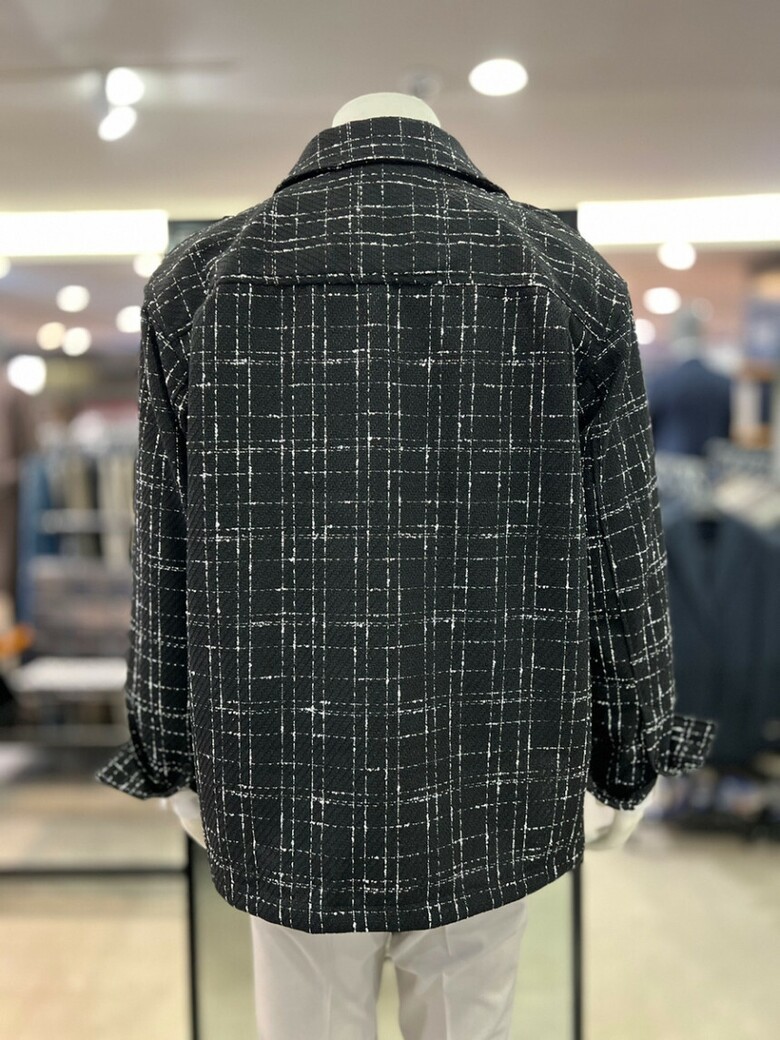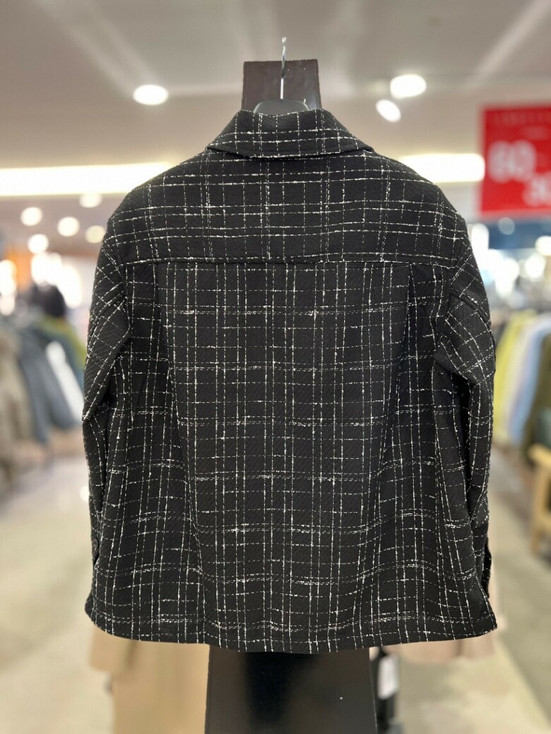 리버클래시 블랙&화이트 트위드 오버핏 아우터형 셔츠 LKS32306