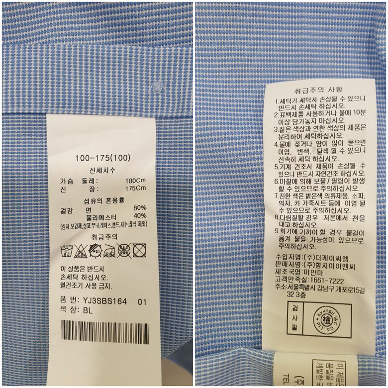 • 처음 배송된 상품상태와 다를 경우(세탁/착용 후 외출하신 경우) 반품이 불가합니다.