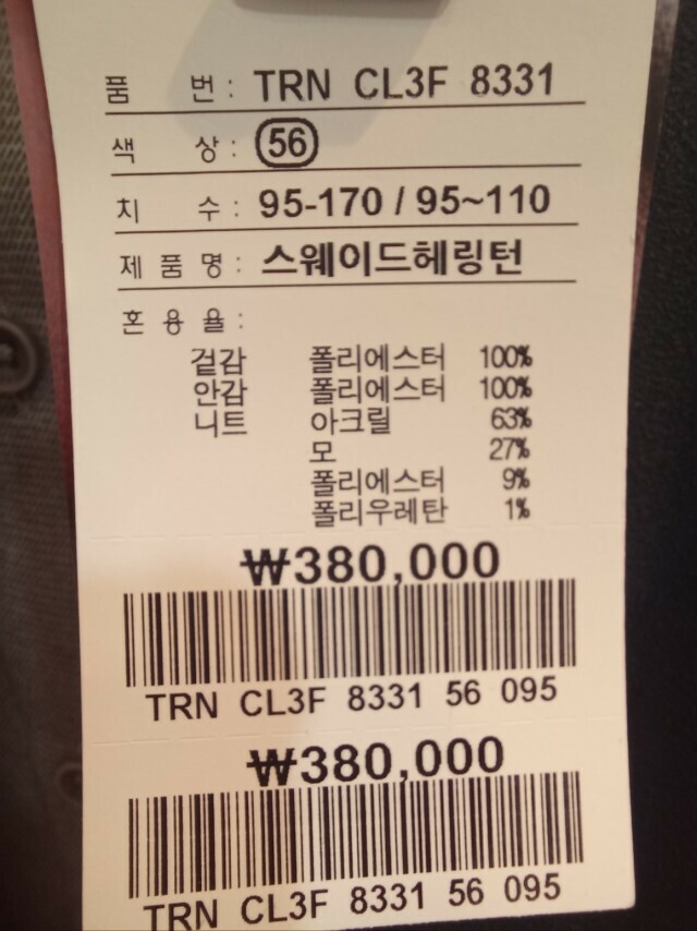 주)세정 트레몰로 23 신상 스웨이드질감 패딩일체형 헤링턴점퍼 TRNCL3F8331