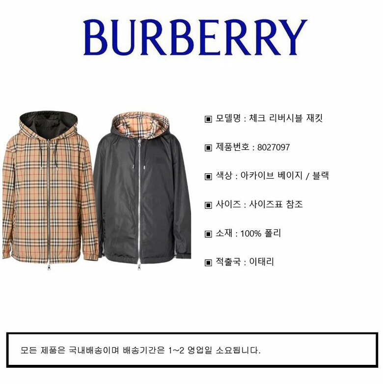 #리본즈코리아 #8027097 #[명품] #버버리 #체크 #리버시블 #남성 #캐주얼 #자켓 #8027097 #의류 #아우터 #캐주얼자켓