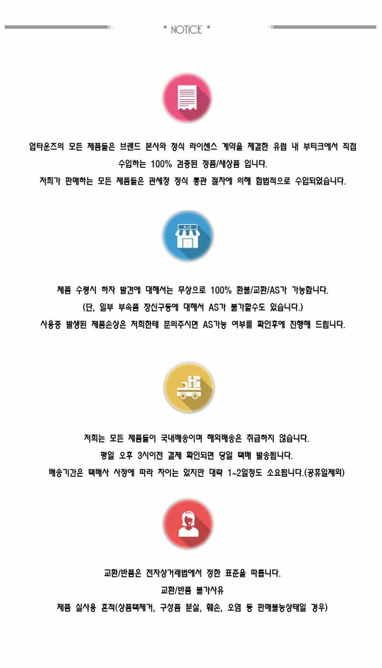 • 모든 규정은 전자상거래법에 의거하며, 택배사정으로 배송이 지연된 경우 재화를 공급받은 날로부터 7일 이내에 반품 가능합니다.