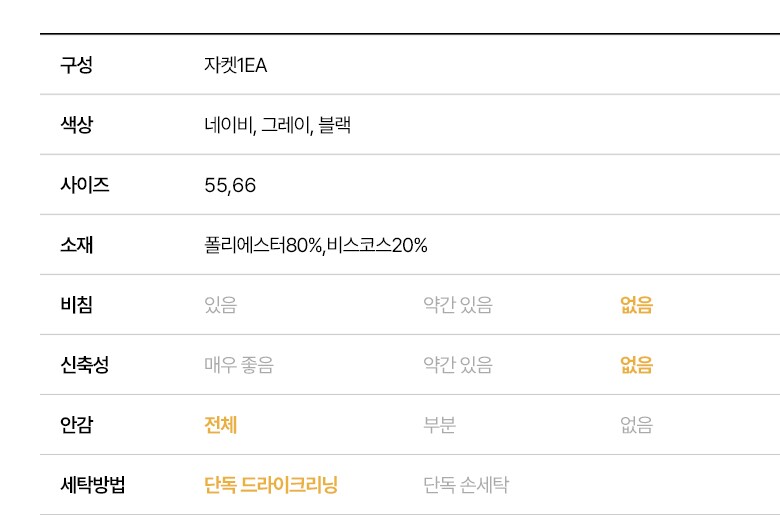 1. 제품 소재 (섬유의 조성 또는 혼용률을 백분율로 표시, 기능성인 경우 성적서 또는 허가서) 폴리에스터80%,비스코스20%