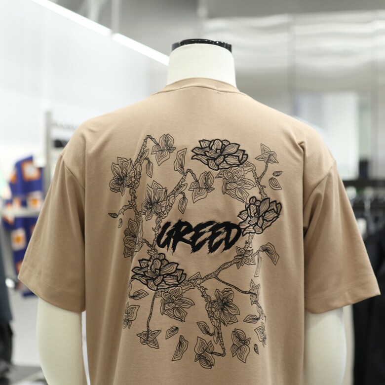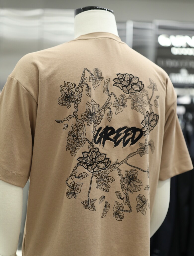 [가넷옴므] 다크베이지 이월오버핏 GREED 콜라보 아트웍 티셔츠 GBS34242
