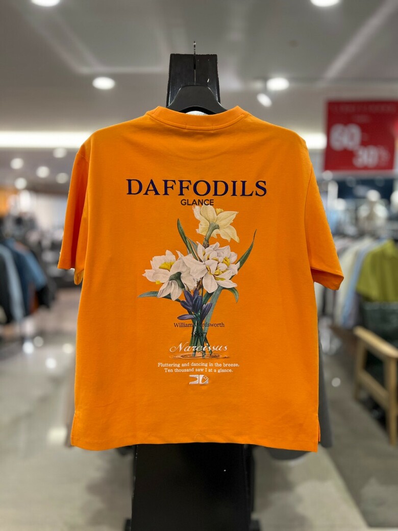 리버클래시 오렌지 플라워 아트윅 오버핏 반팔 티셔츠 LKS42311