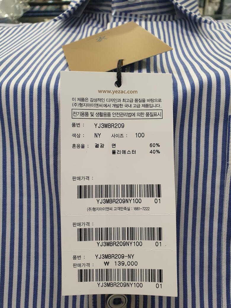 [예작셔츠] 반소매 면혼방 스트라이프 일반핏셔츠 YJ3 MBR 209 NY