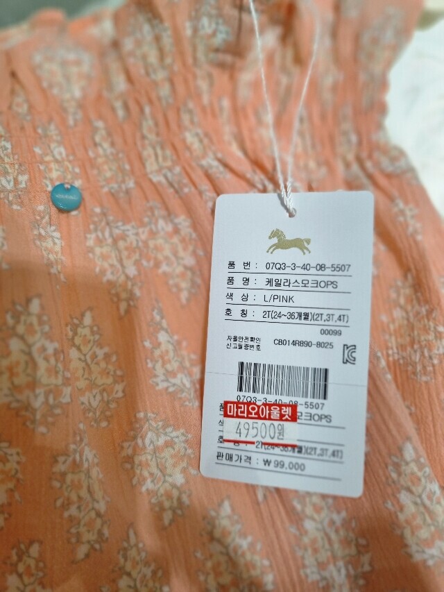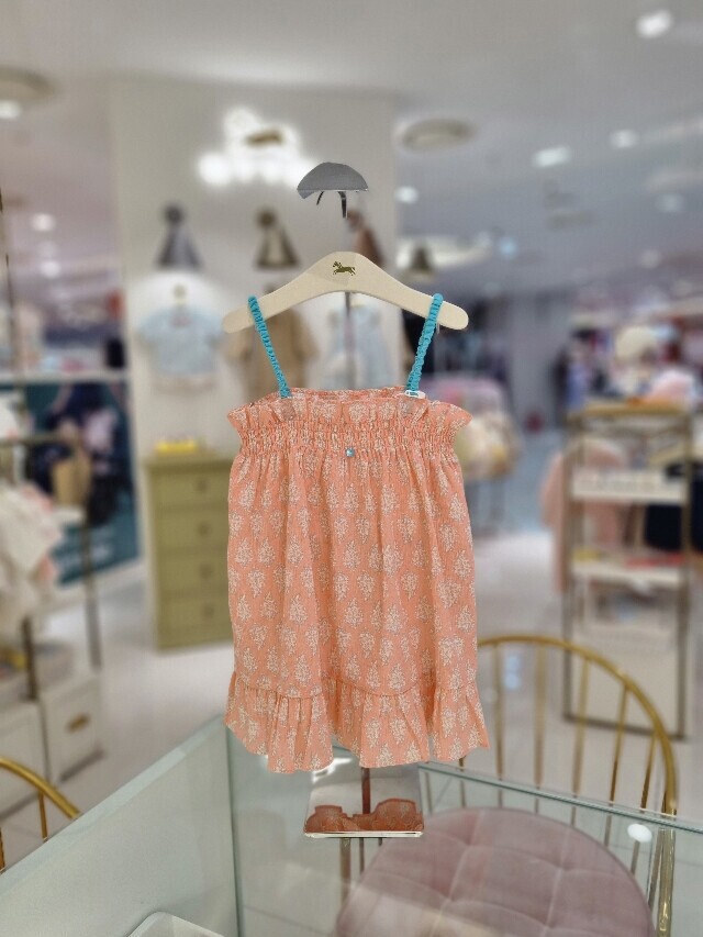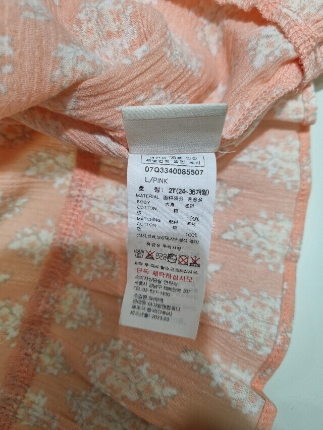 시원한 면 100% 소재의 여아 끈 원피스입니다