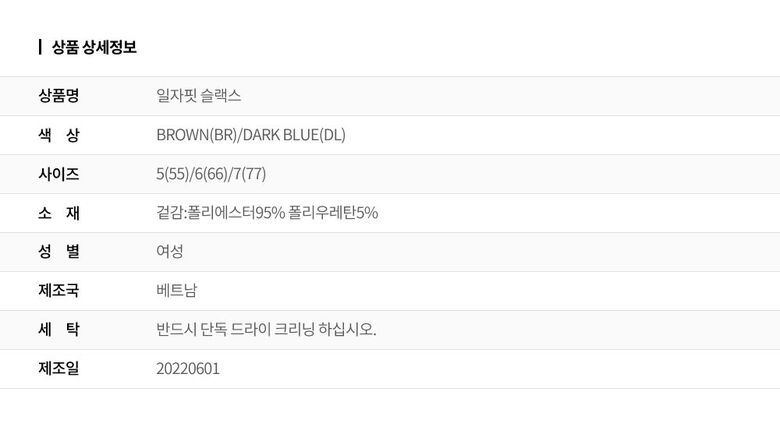 | 2. 색상 | 색상:BROWN(BR)/DARK BLUE(DL) |