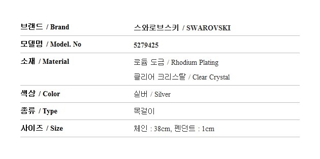 | 1. 소재 / 순도 / 밴드재질 | 실버 / 쥬얼리 - 로듐 도금 / 팬던트 - 크리스탈 |