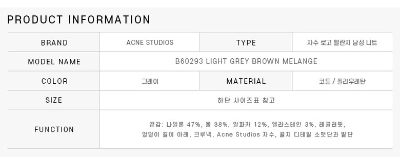 아크네스튜디오 B60293 LIGHT GREY BROWN MELANGE 자수 로고 멜란지 남성 니트상품
