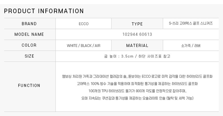 에코 ECCO 102944 60613 S-THREE 남성 스니커즈 신발