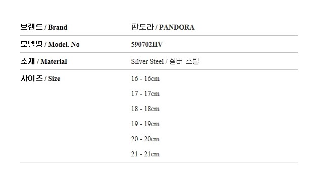 판도라 PANDORA 모먼트 스네이크 체인 실버 공용 팔찌 590702HV