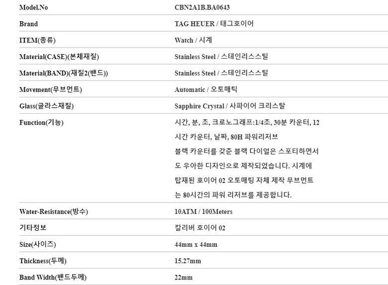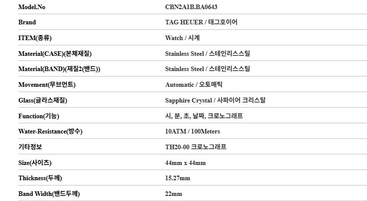 | 3. 제조사 | 태그호이어/MACHO-병행수입 |