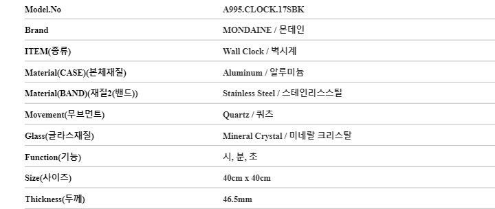 7. 주요 사양 알루미늄 벽시계 쿼츠