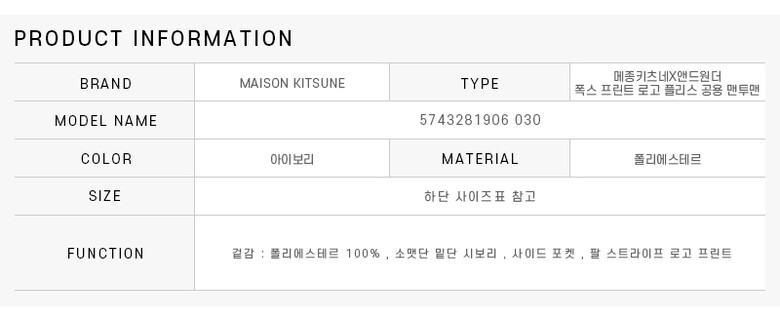 메종키츠네 5743281906 030 메종키츠네X앤드원더 공용 맨투맨