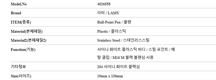 | 8. 사이즈정보 | 상세페이지 참조 |