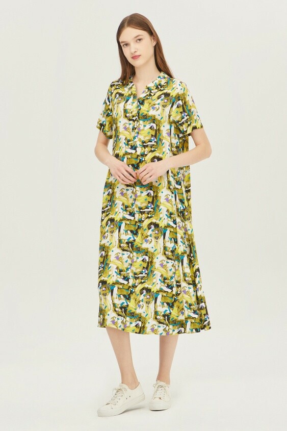 베네통 셔츠카라 프린트 원피스 BAOP92331