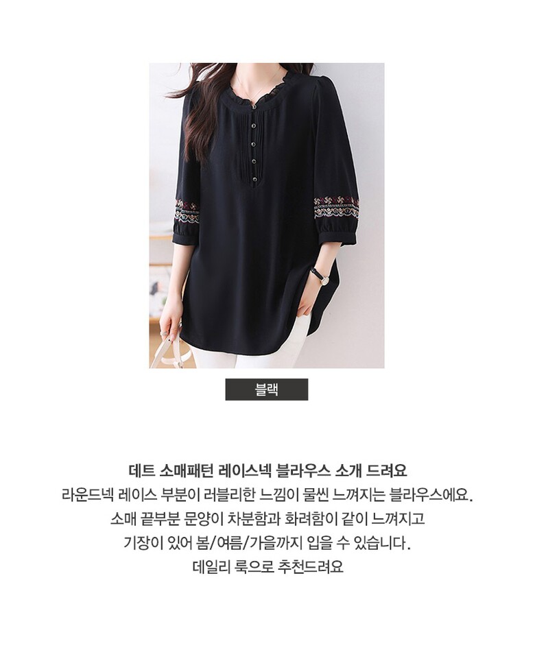 [~99까지]빅사이즈 데트 소매패턴 레이스넥 블라우스